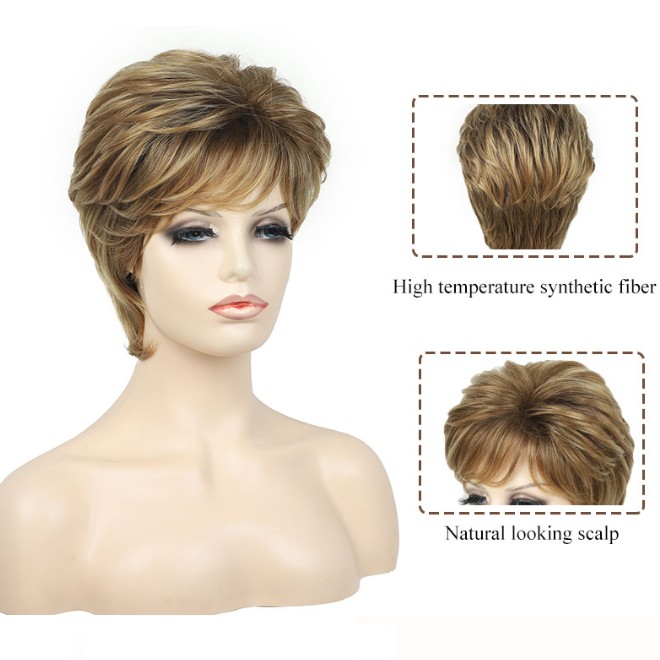 Feature: High-Quality Synthetic Fiber, Mixed Gold Hair Color, Soft to The Touch, Soft to The Touch, Natural Looking